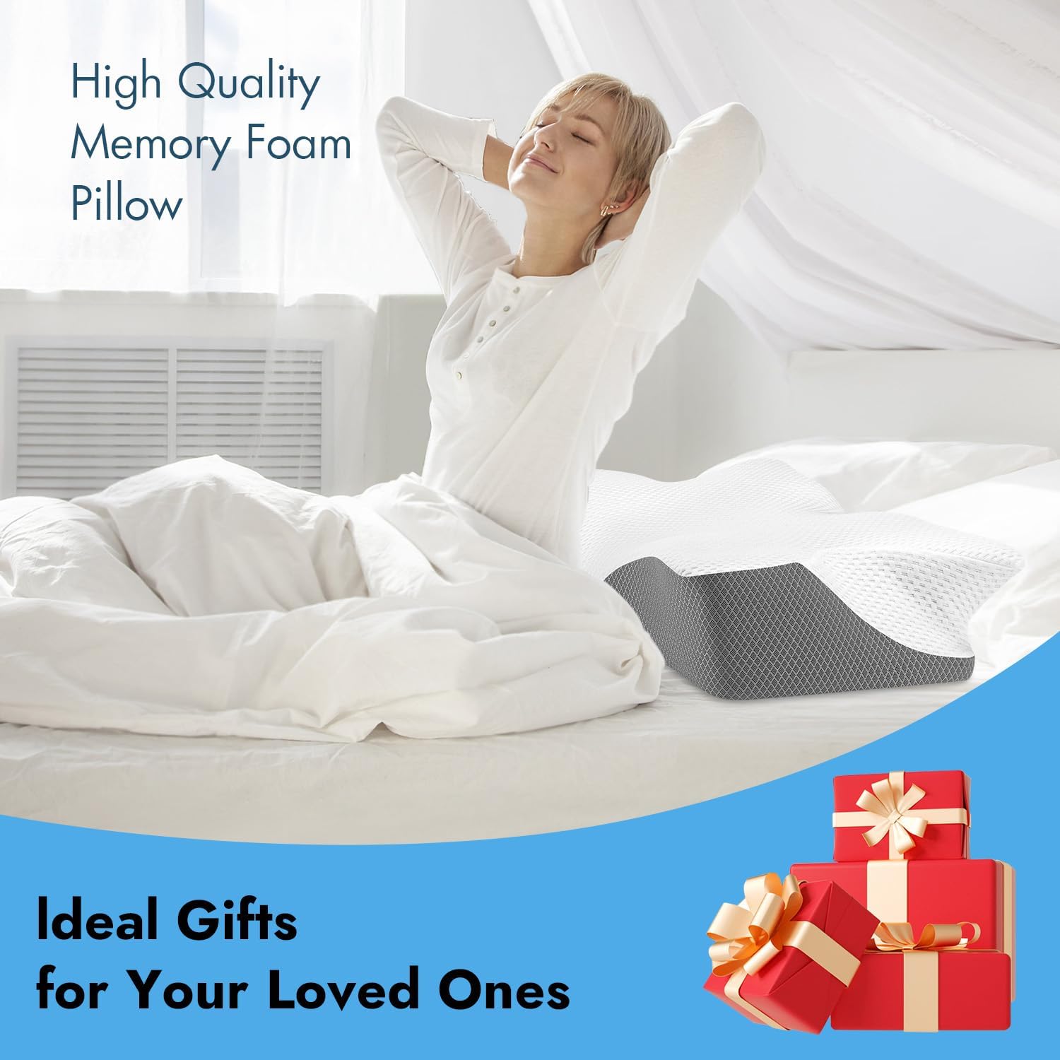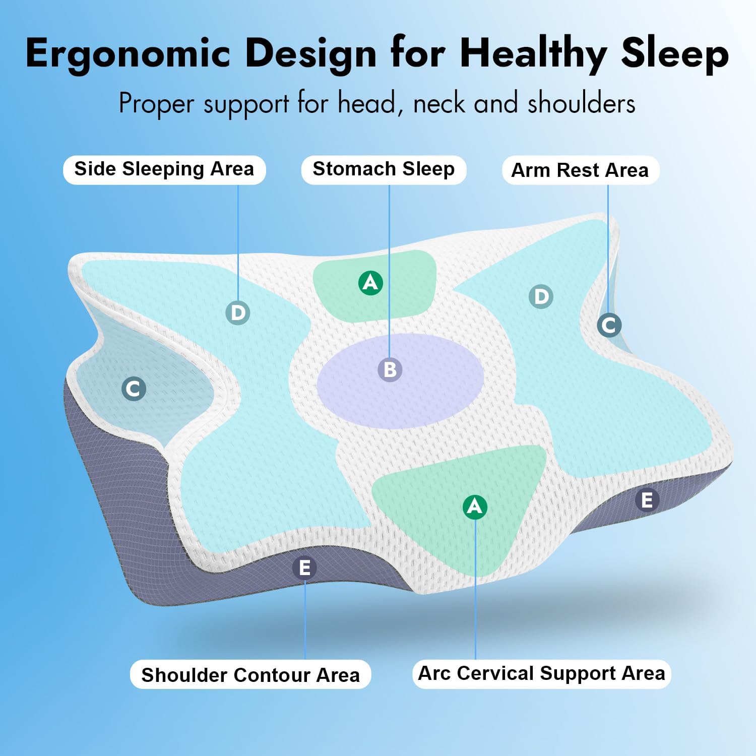Crafted with high-density memory foam, the Axmof SweetNap Neck Pillow conforms to your natural neck curve, providing personalized comfort and relieving neck, shoulder, and back pain. Its ergonomic, butterfly-shaped design features dual contour heights, making it ideal for all sleep positions—whether you sleep on your back, side, or stomach.